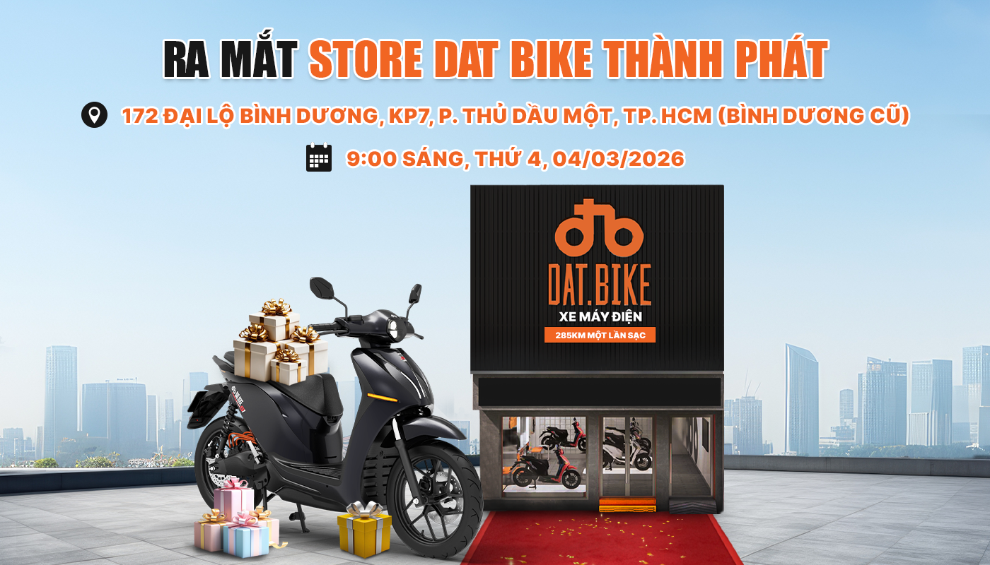 Dat Bike trân trọng mời Quý khách đến tham dự sự kiện khai trương vào lúc 9:00 sáng, Thứ 4 ngày 04/03/2026 tại Store Dat Bike Thành Phát – 172 Đại Lộ Bình Dương, Thủ Dầu Một.